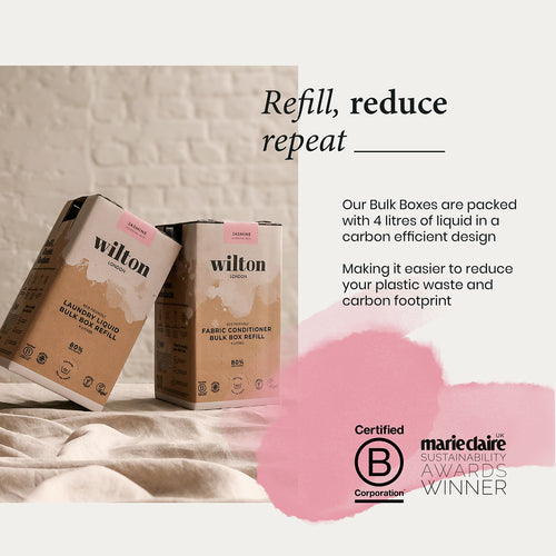 We love our Bulk Box eco-friendly botanical laundry refills. They use 80% less plastic and are 100% recyclable. Their boxy design makes them super space efficient for easy storage and a lower carbon footprint vs rigid plastic bottles.